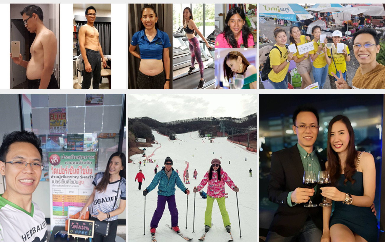 เราสองคนรู้จัก HERBALIFE จากรุ่นน้อง เพียงเพราะอยากควบคุมน้ำหนักลงเล็กน้อย หลังจากใช้ผลิตภัณฑ์ 1 เดือน รู้สึกประทับใจในผลลัพธ์ผลิตภัณฑ์อย่างมาก จึงเริ่มต้นทำธุรกิจแบบ Part-Time และหลังจากได้เข้างาน Extravaganza ทำให้เห็นภาพใหญ่และอนาคตของครอบครัวอย่างชัดเจน เรามีความฝันที่อยากจะมียืดหยุ่นทางการเงินและเวลา รวมถึงมีสุขภาพที่ดีไปพร้อมๆกัน จึงตัดสินใจทำธุรกิจแบบเต็มเวลา